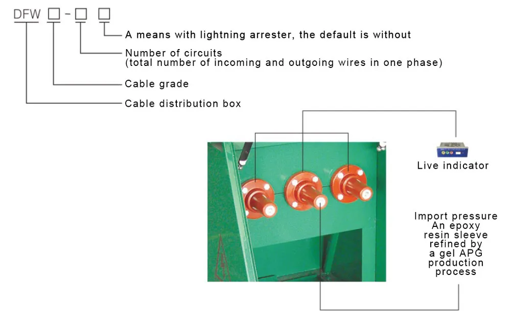 Its main features are two-way opening and the use of butt sleeves as connecting busbars. It has small length, clear cable arrangement, and three-core cables. There are significant advantages such as no need for long-span crossovers. The cable connector used complies with DIN47636 standard. Generally, bolt-fixed cable joints with a rated current of 630A are used.