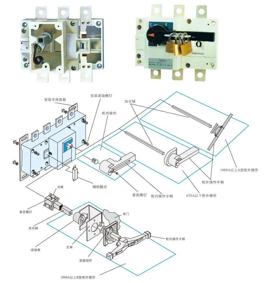 | Rated breaking capacity (A Rms) AC-23 380V | 1250 | 1250 | 2000 | 2000 | 3150 | 4000 | 4000 | 4000 | 10000 | 10000 | 10000 |
