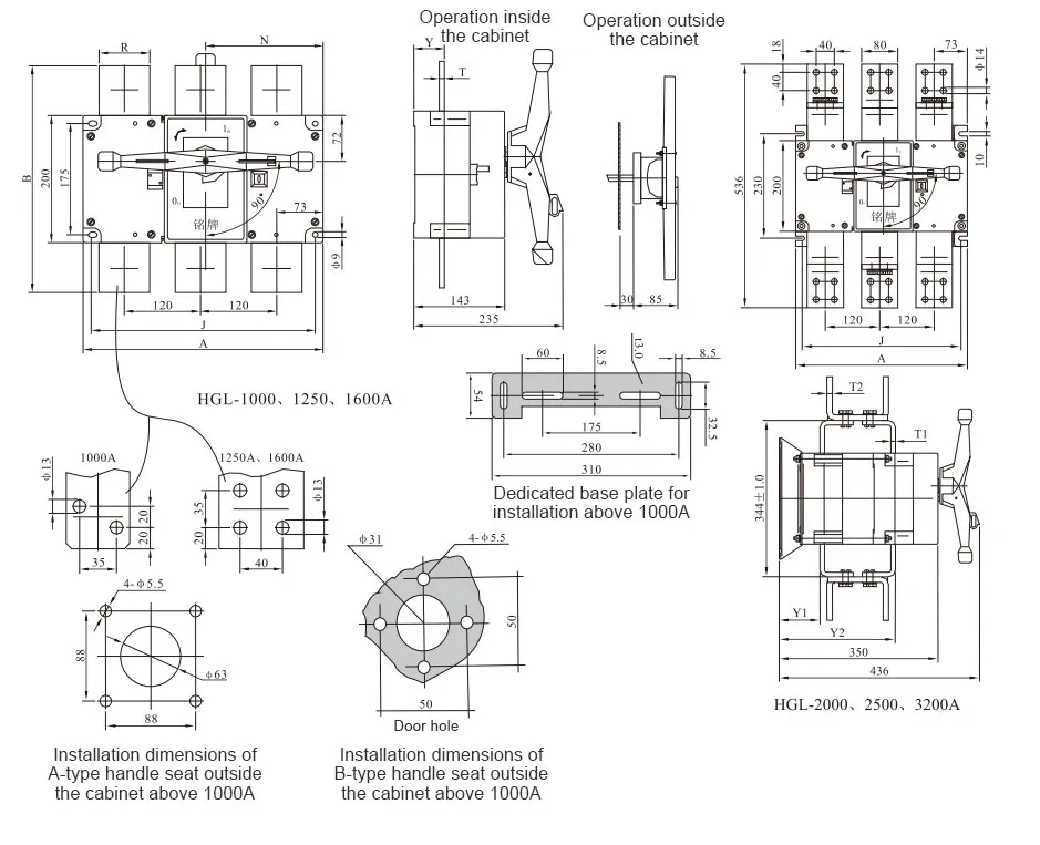| Specification | A | J | T1 | T2 | Y1 | Y2 |