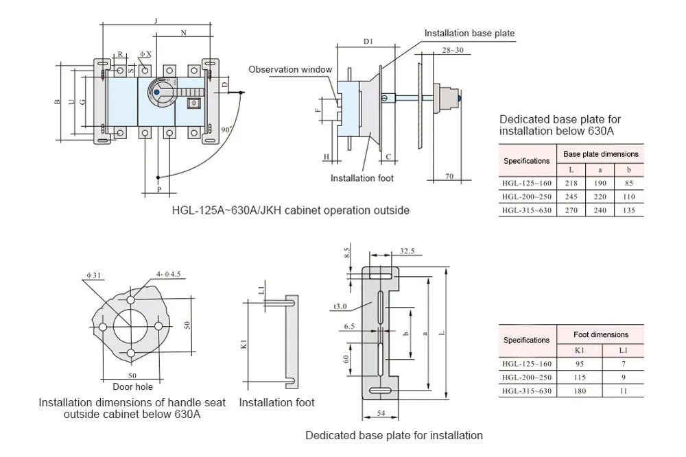 | Specification | Appearance and installation dimensions | |||||||||||||
