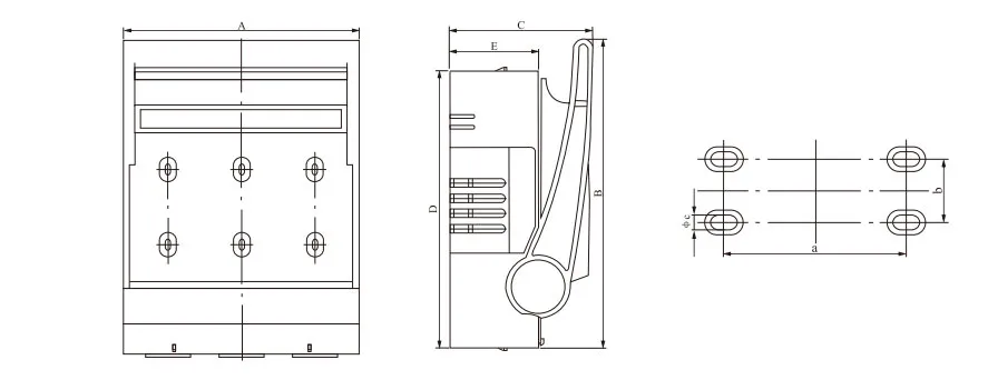 | Model | Dimensions (mm) | Installation dimensions (mm) | Fuse link | ||||||