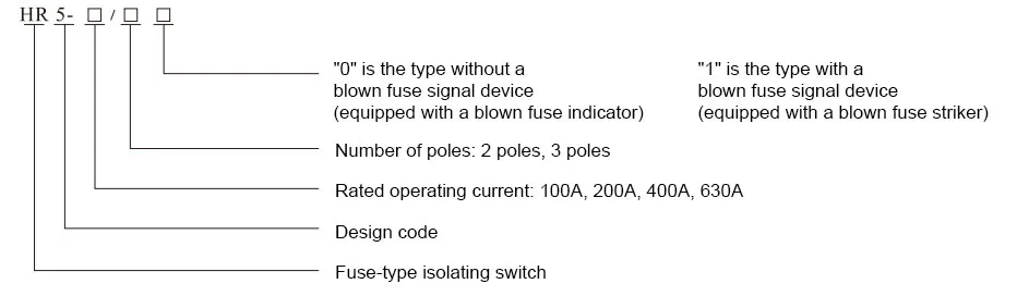 Note: When the switch is used in the motor circuit, the fuse rated current is allowed to be greater than the switch's agreed heating current