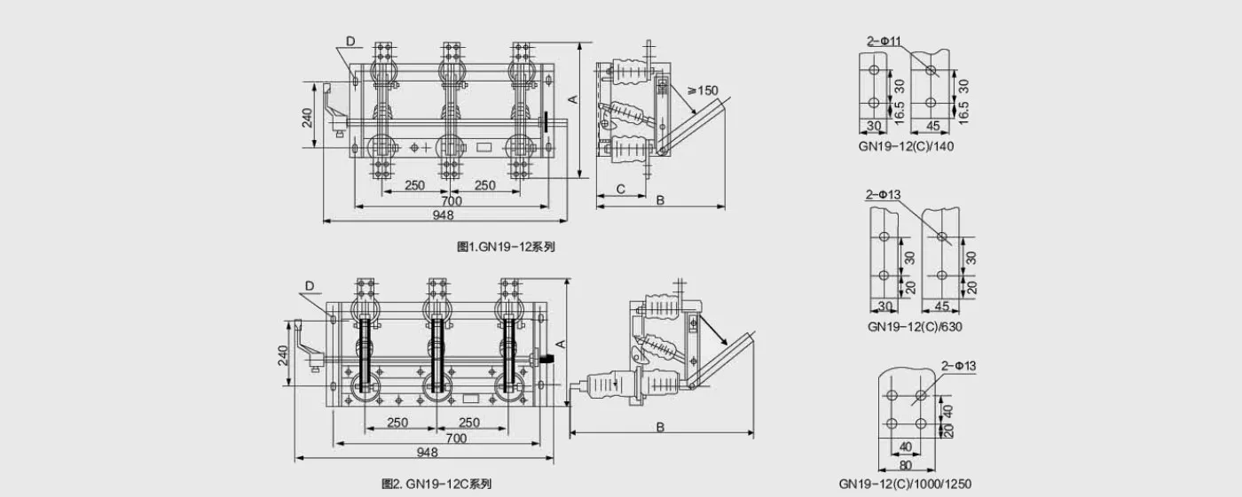 | GN19-12C/1000/1250 | 470 | 745 | 196 | 4-18×28 |